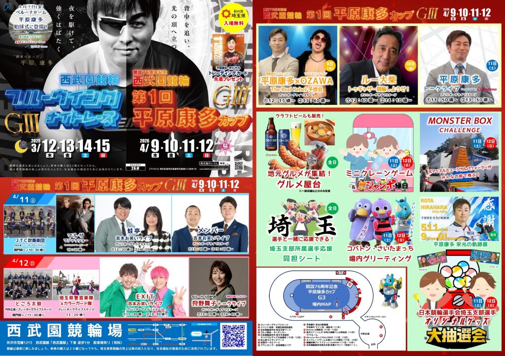開設76周年記念 西武園競輪 第1回平原康多カップ G3「開催リーフレット・イベントフライヤー」